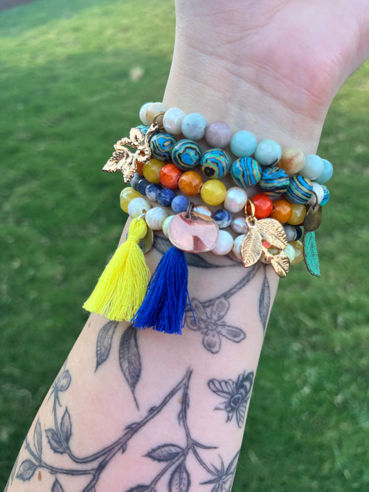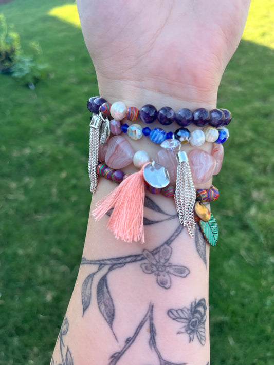 Amazonite & Freshwater Pearl Stretch Charm Bracelet