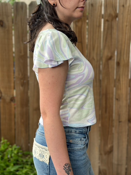 The Emily Flutter Sleeve Tee | Marble | S